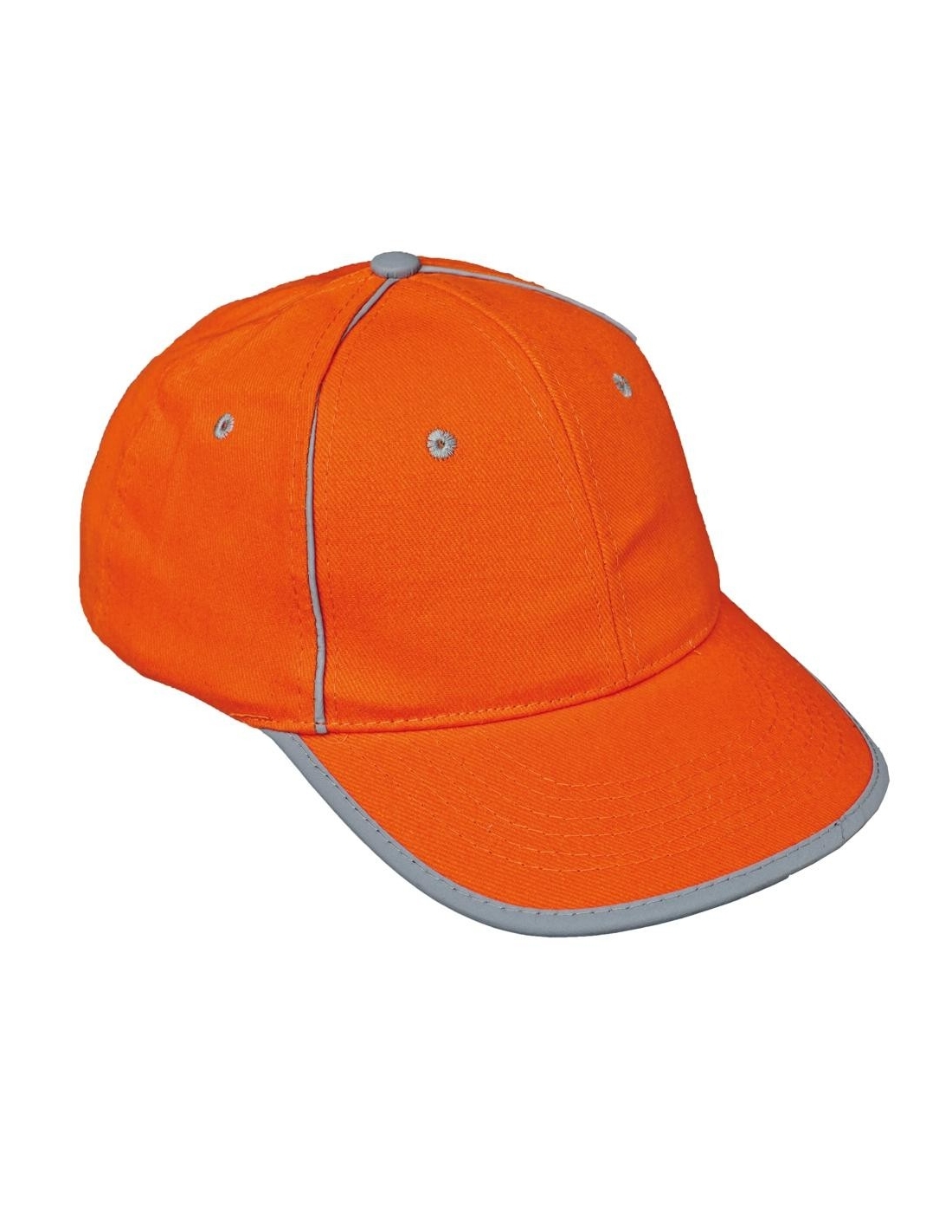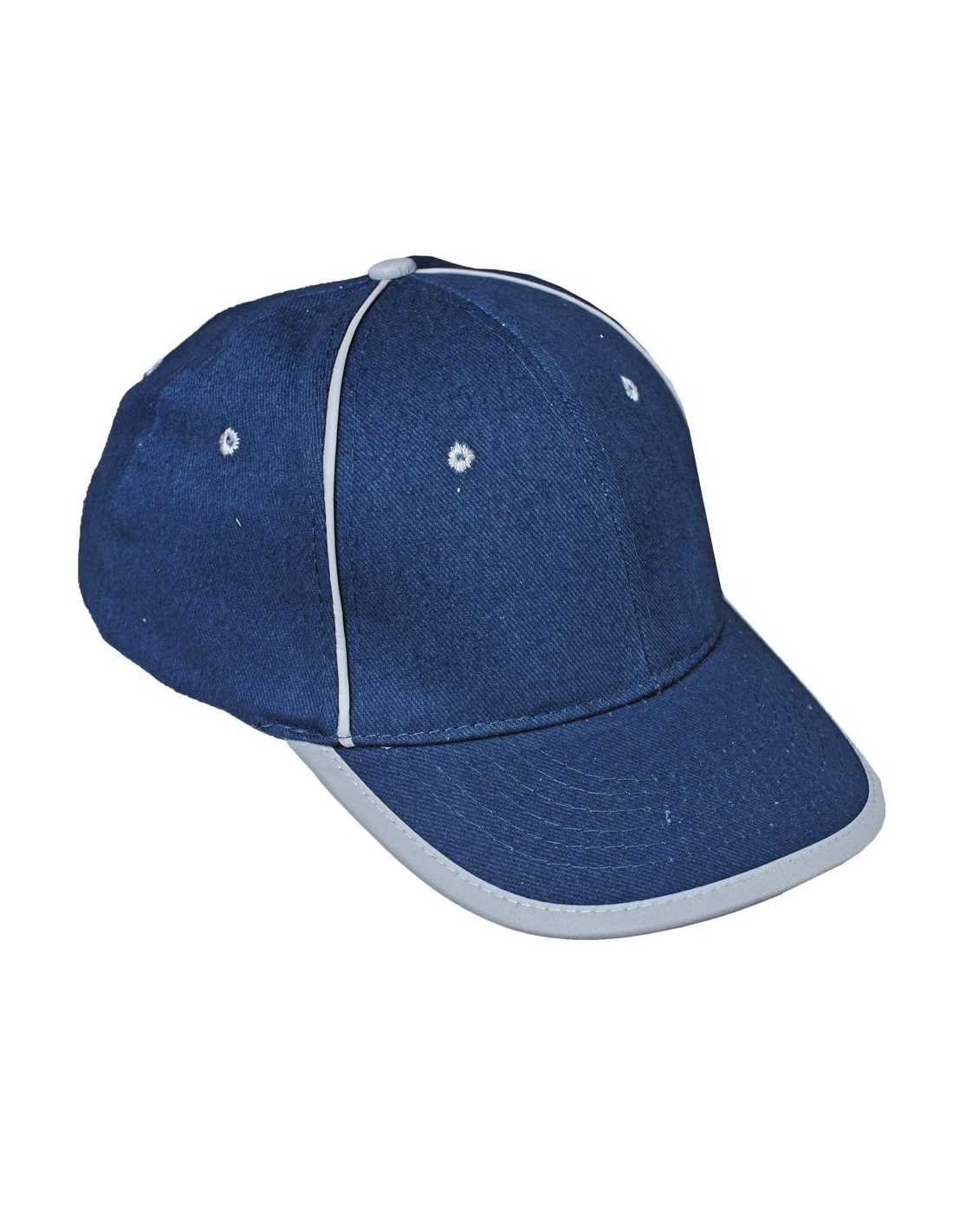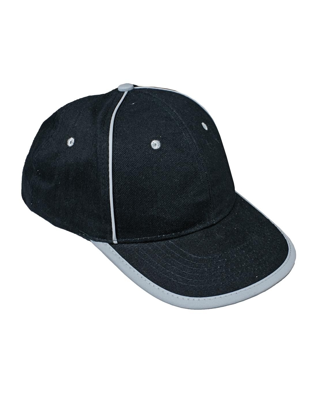 Baseball cap with reflective accessories and Velcro head circumference adjustment.