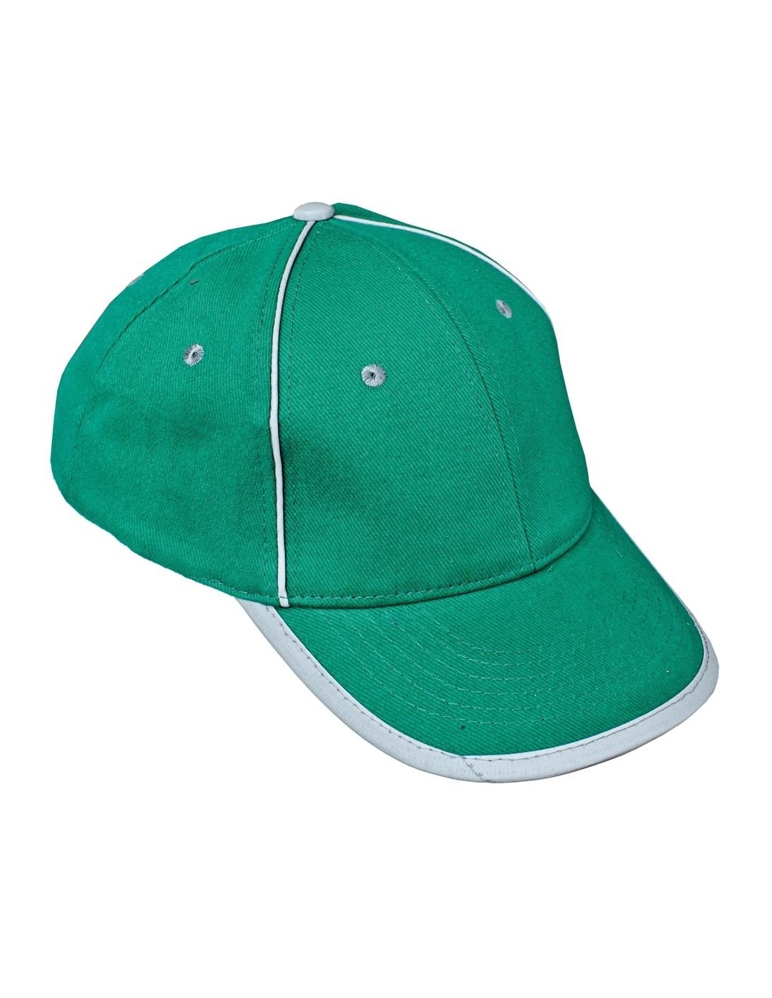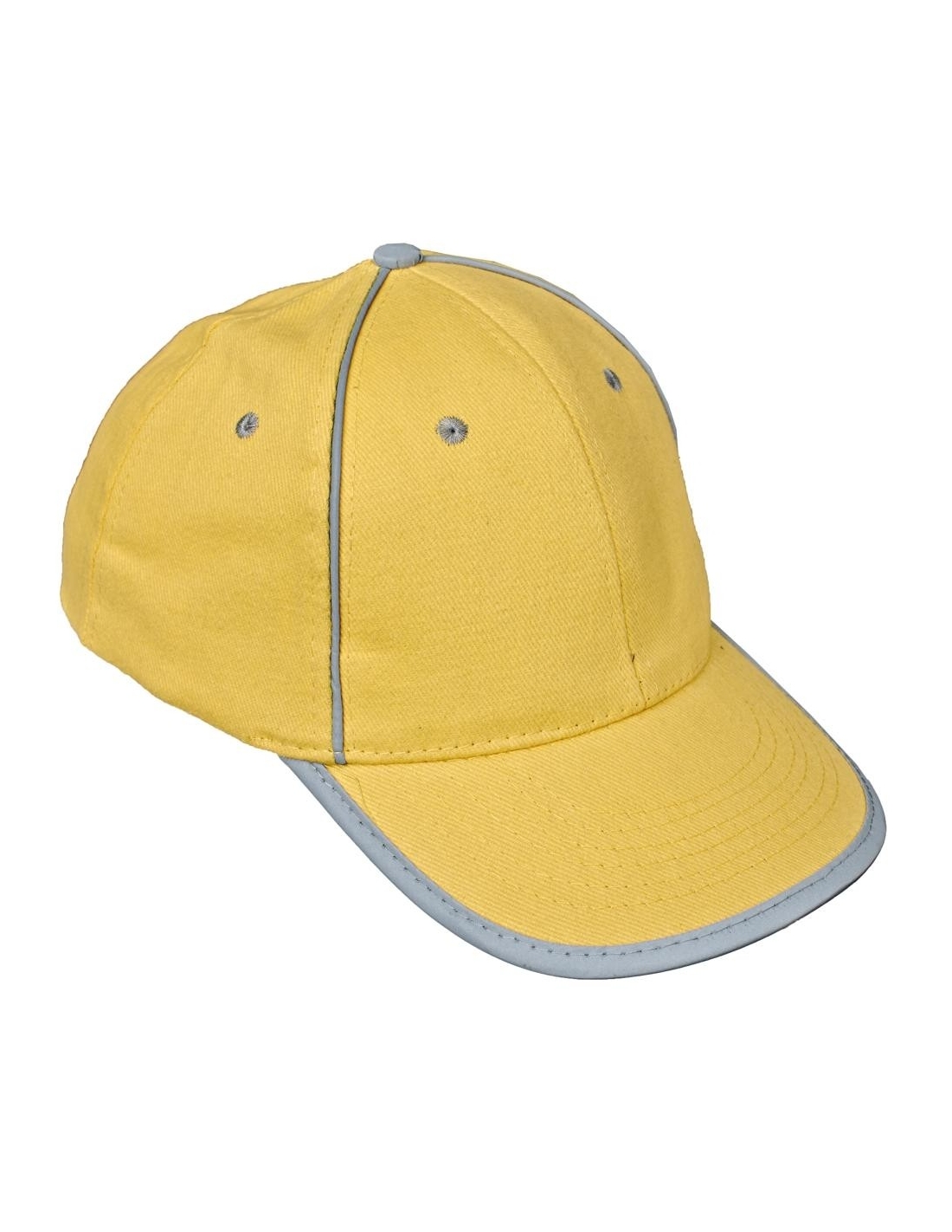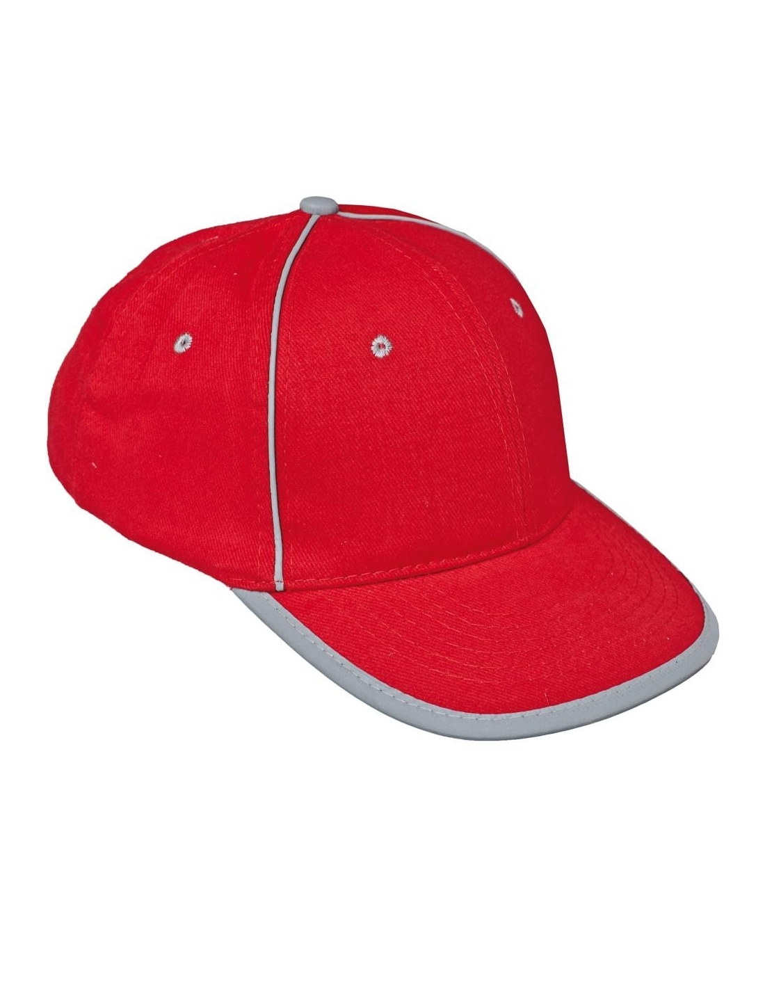 Baseball cap with reflective accessories and Velcro head circumference adjustment.