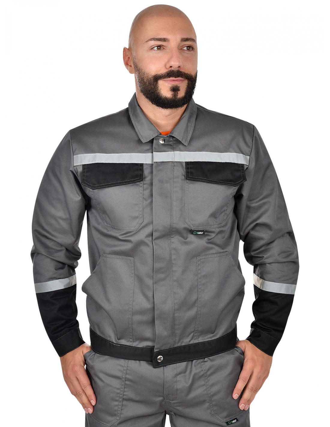 Jacket with covered zip cuffs and belt fastening with snap buttons, 240gr/m2.