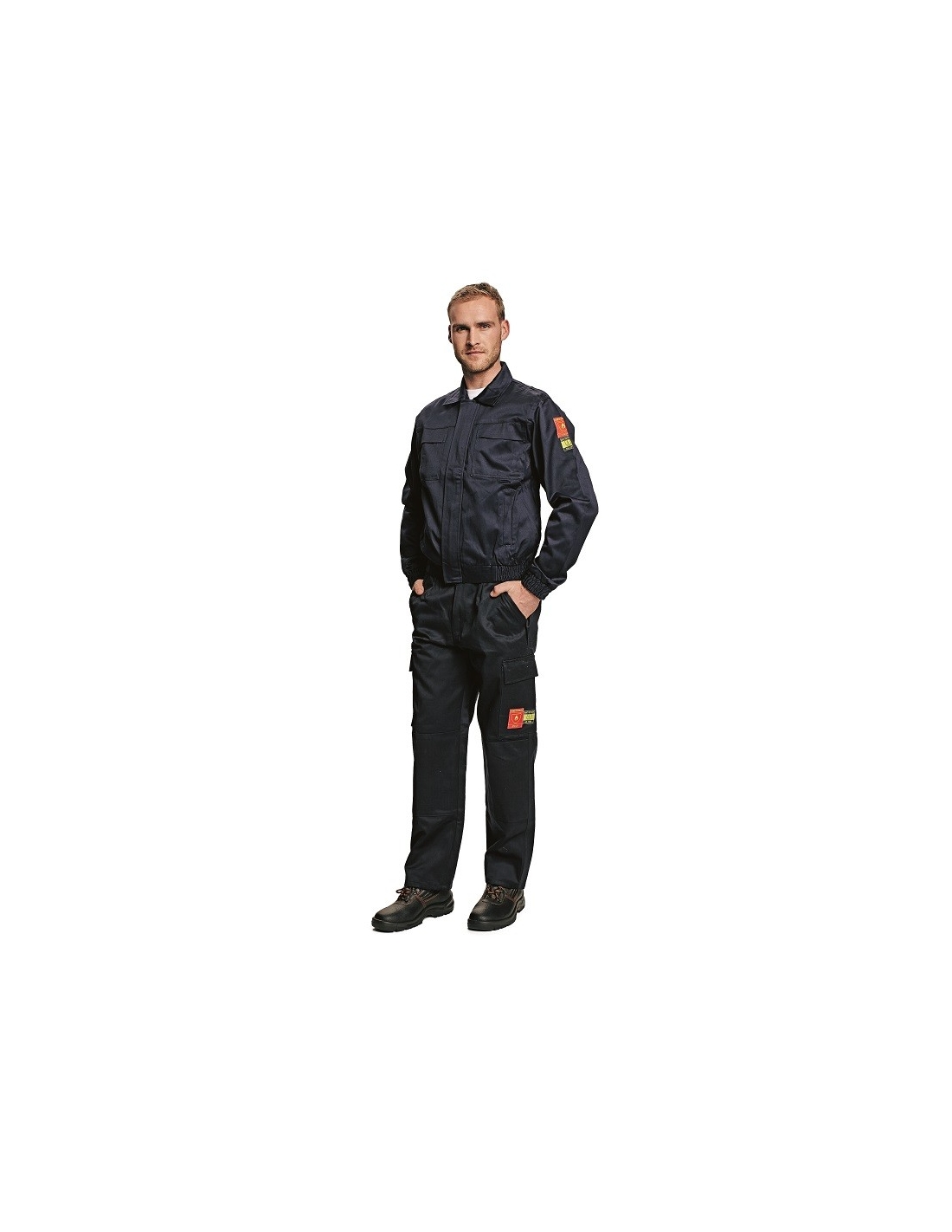 Norma: EN 1149-5:2008, EN531:95/A1:98 - Fastening covered with a flap with Velcro - Two breast pockets covered by flaps patched on the sides - Two covered inside pockets - Sleeves with elastic cuffs - The jacket is ended by a wide, elastic hem on the sides.